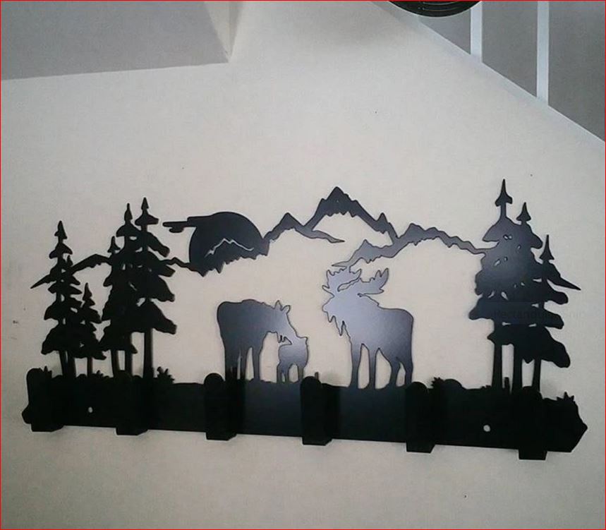 - 1/8" steel, Moose and Forest Coat Hanging Rack for your custom metal decor
