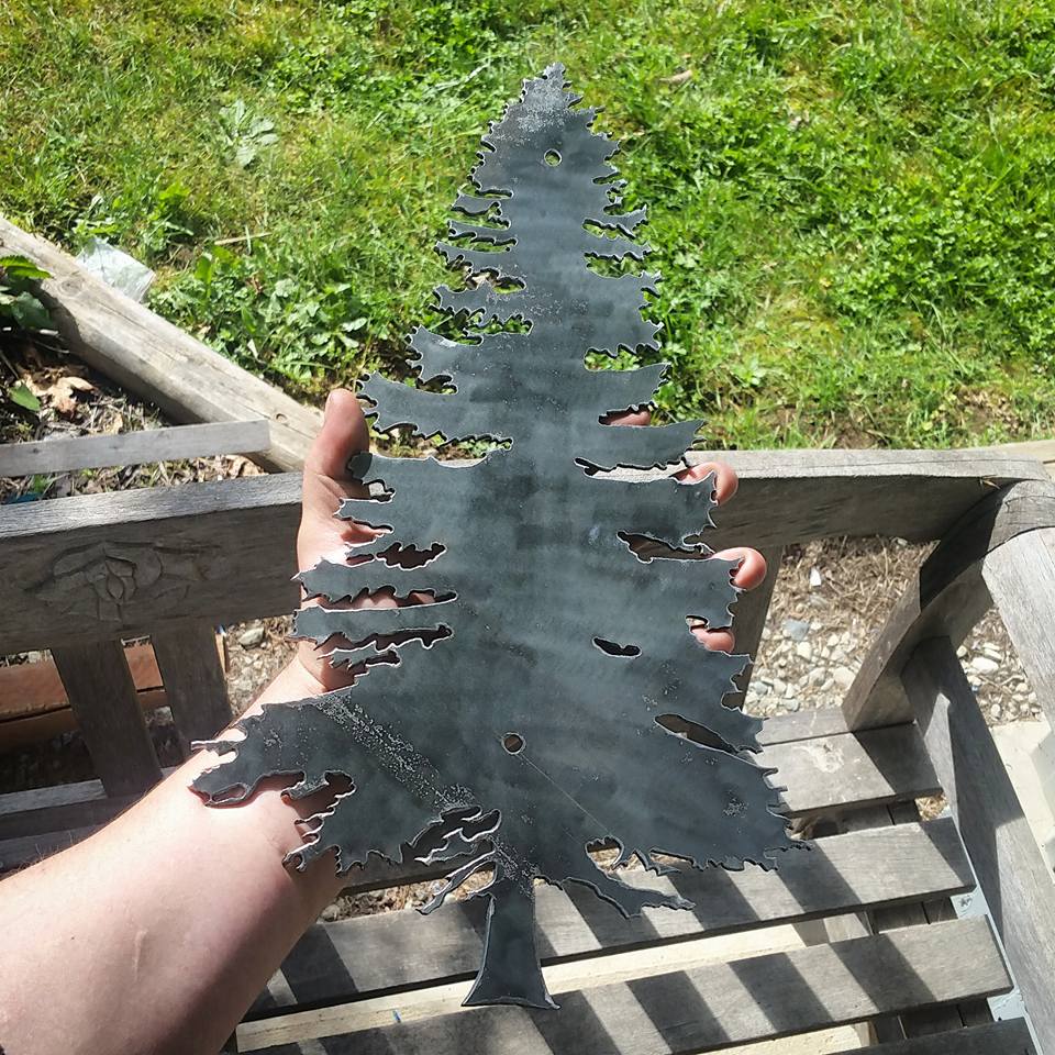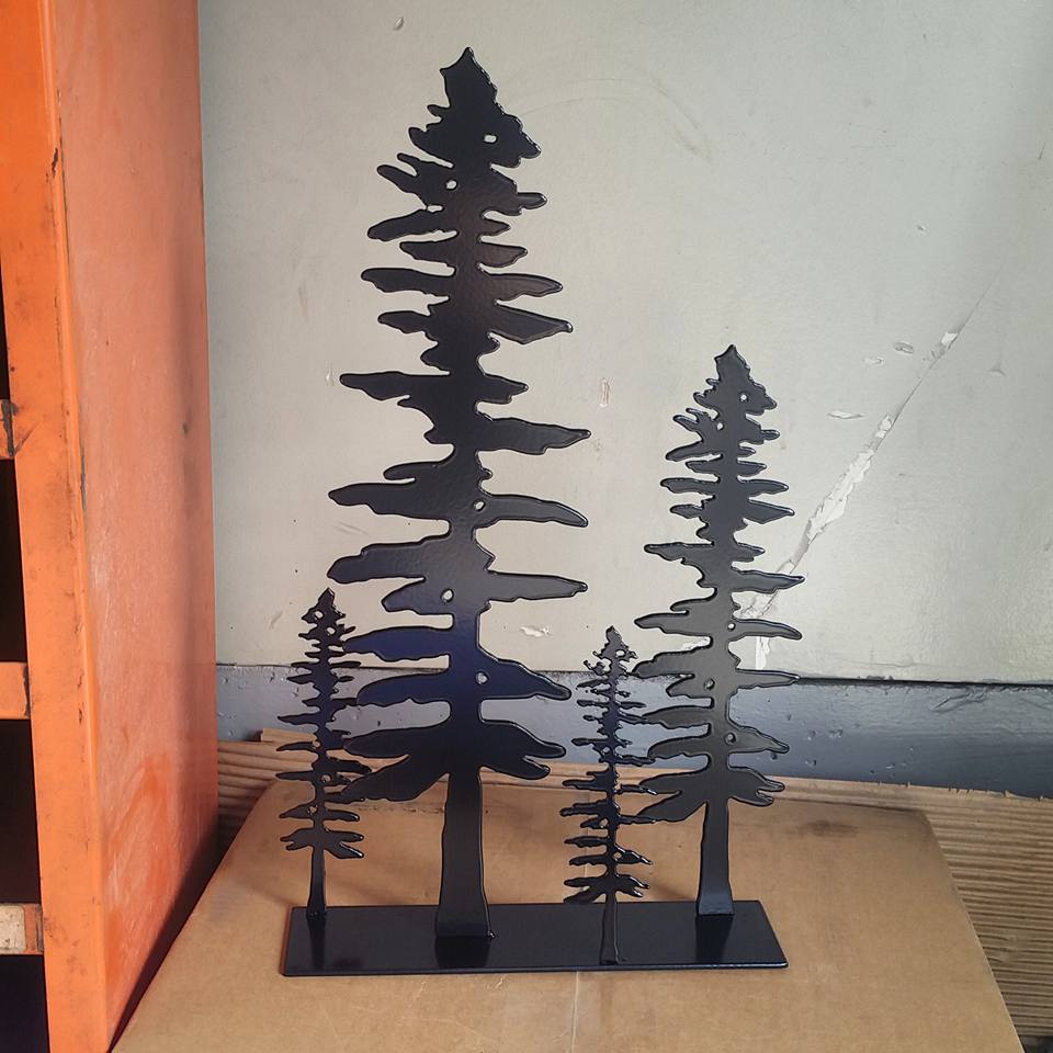 - Mounted, standing 1/8" steel, mounted Sitka spruce or evergreen trees, perhaps even with a layer of fresh powder added