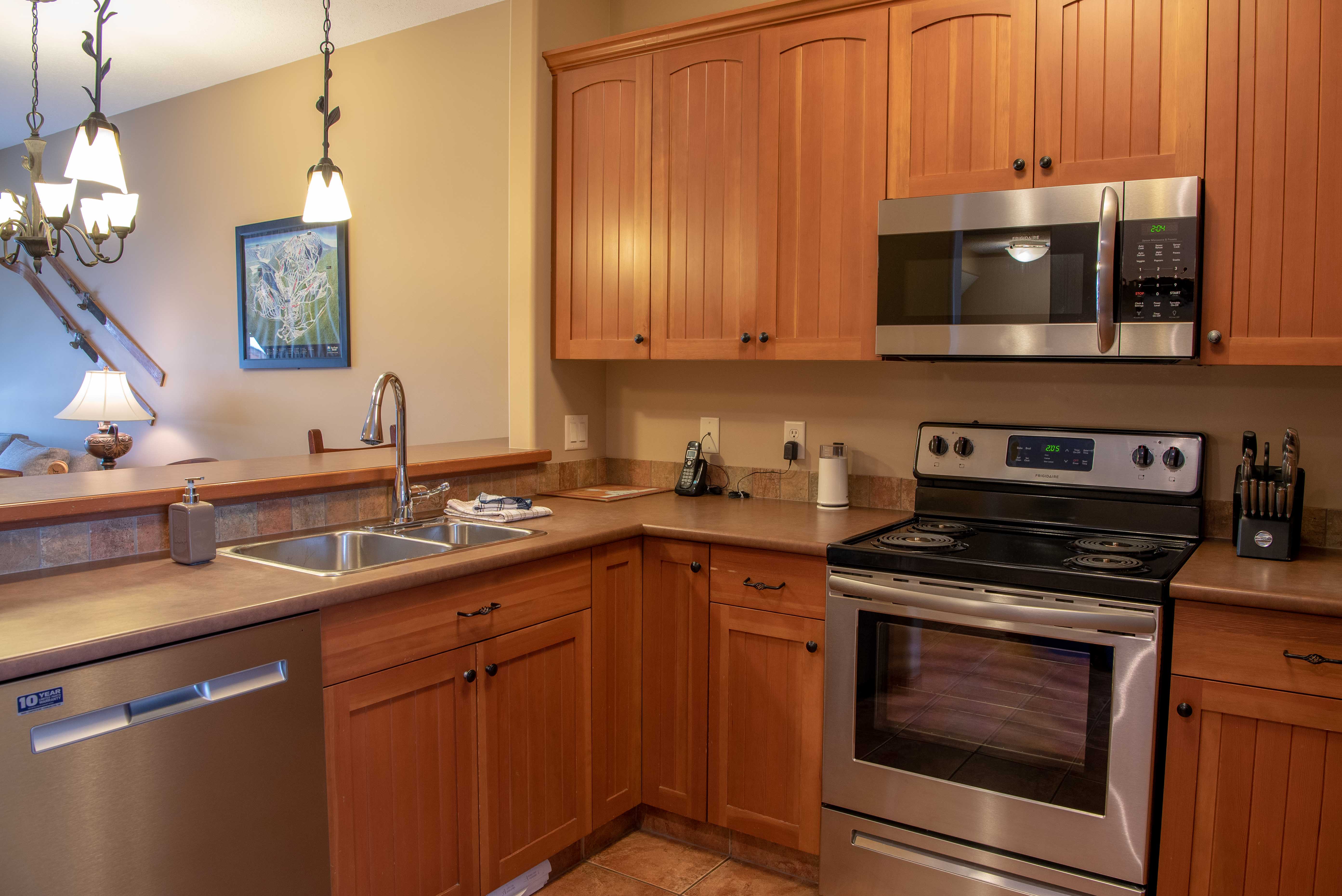 Trail's Edge clean & well-stocked kitchen- The Trails Edge Townhouse kitchen comes fully stocked with plenty of everything - enough to prepare the simplest or the finest of meals